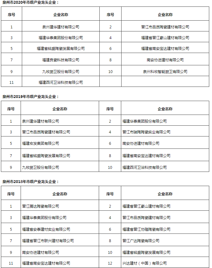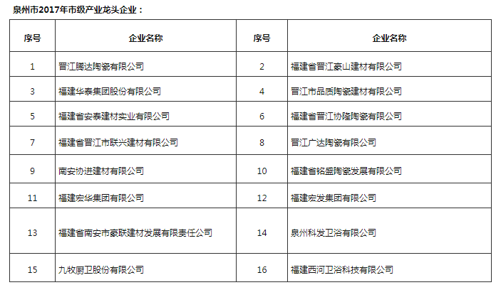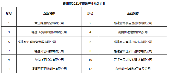 其中,建材家居行業(yè)中,協(xié)進、九牧等12家福建陶衛(wèi)企業(yè)進入2021年泉市級產(chǎn)業(yè)龍頭企業(yè)項目名單。
